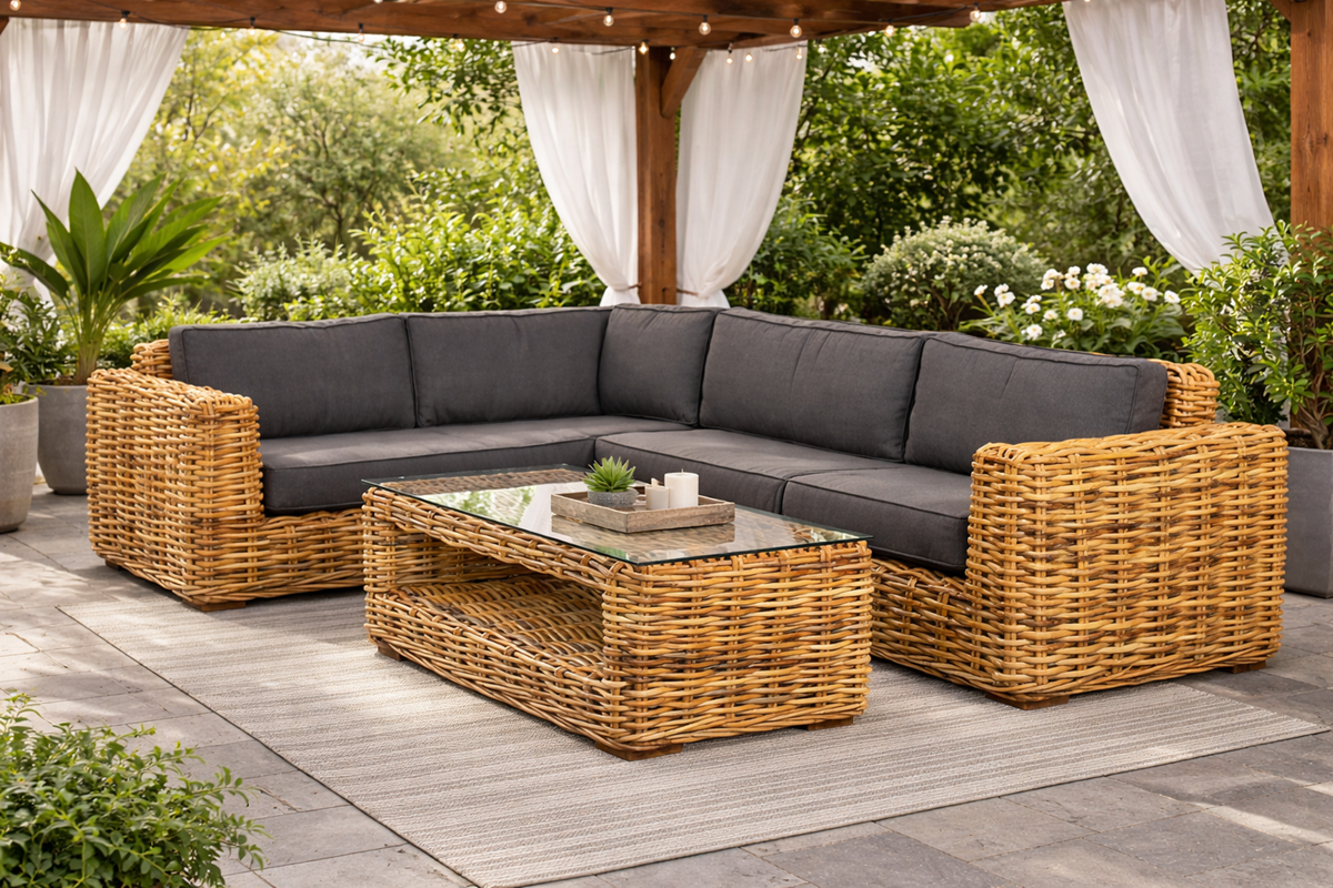 Luksusowy zestaw wypoczynkowy z rattanu NURU ze stołem
