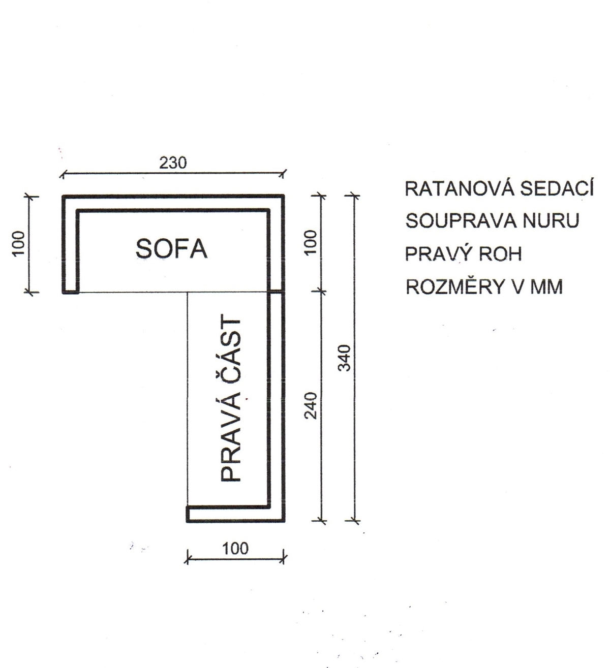 części prawej (230 × 100 × 74 cm)
