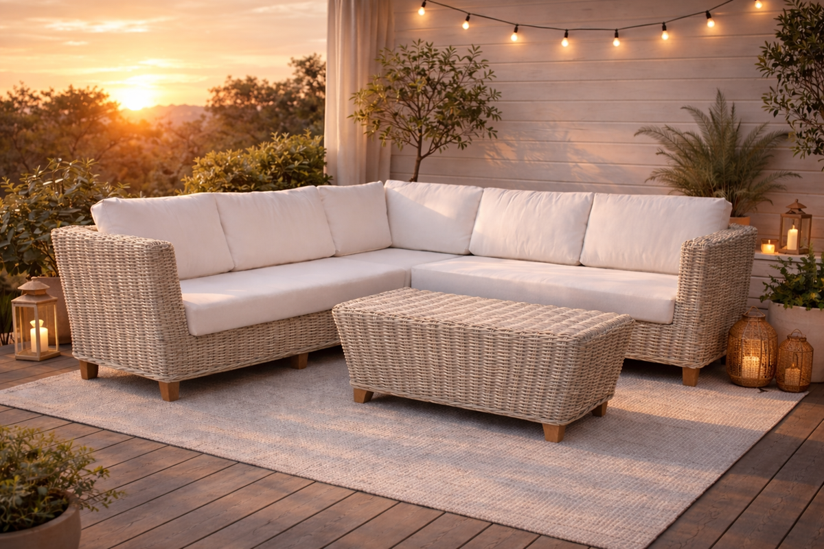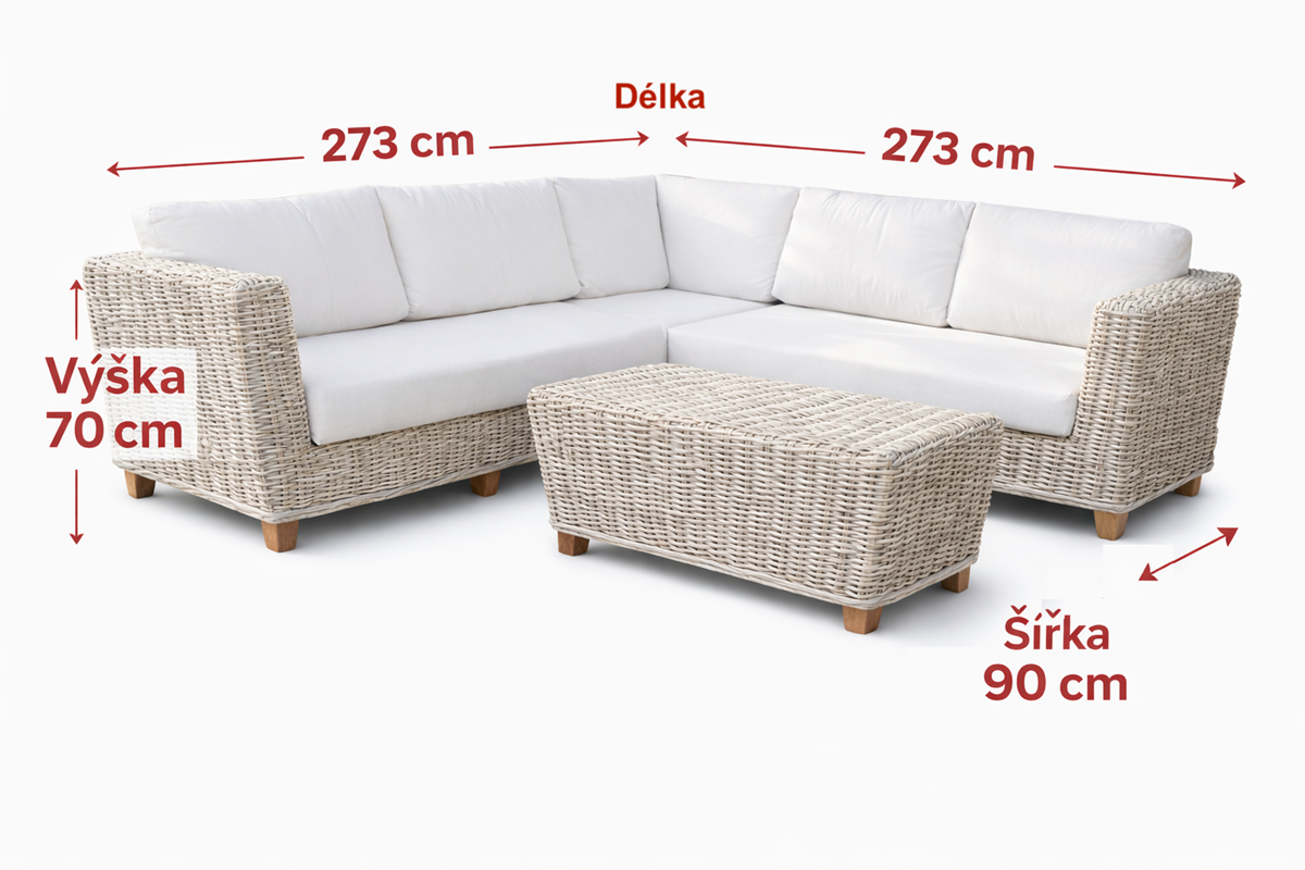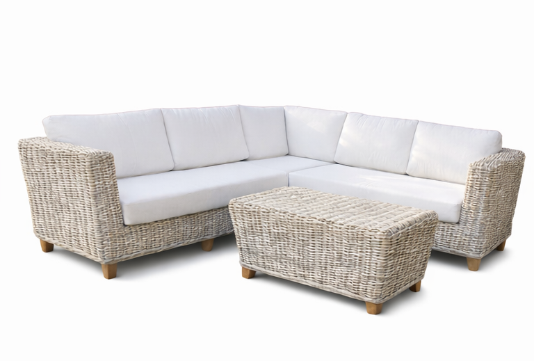 Zestaw ogrodowy LAURA z rattanu wykonany jest z naturalnego, ciętego rattanu CUBU, który charakteryzuje się wysoką wytrzymałością, trwałością i bardzo przyjemną w dotyku powierzchnią. Rattan pozostawiony jest w stanie naturalnym bez obróbki powierzchni, co podkreśla jego autentyczną strukturę i naturalny wygląd. Dzięki swoim właściwościom nadaje się do długotrwałego użytkowania na tarasach, w ogrodach i zadaszonych przestrzeniach zewnętrznych.