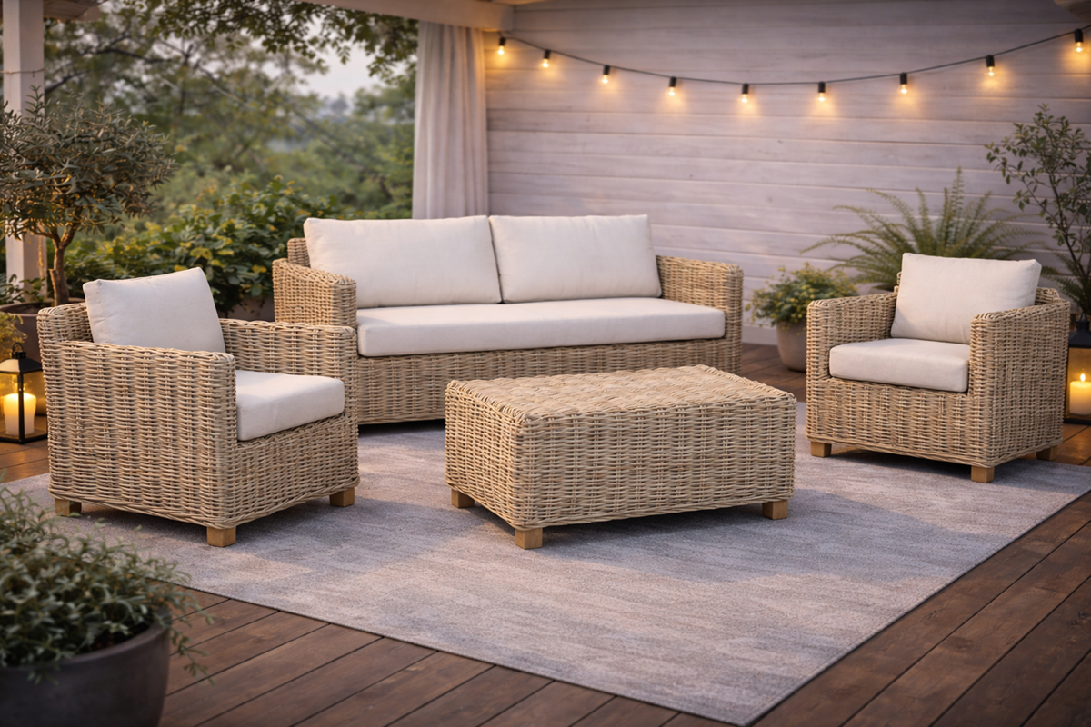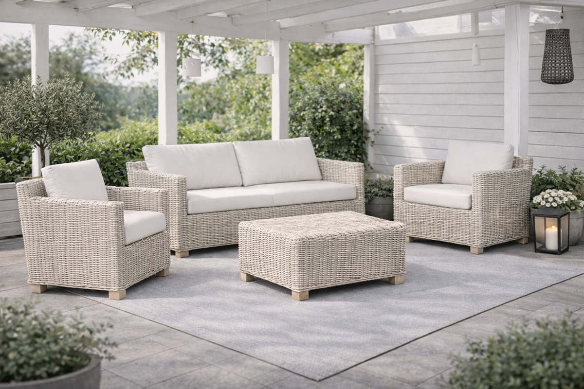 Meble rattanowe chronione przed bezpośrednim działaniem promieni słonecznych i deszczu zachowują swój kolor i trwałość przez długi czas. Zimowe przechowywanie mebli na zewnątrz nie stanowi problemu, jeśli nie będą narażone na niekorzystne warunki atmosferyczne.
