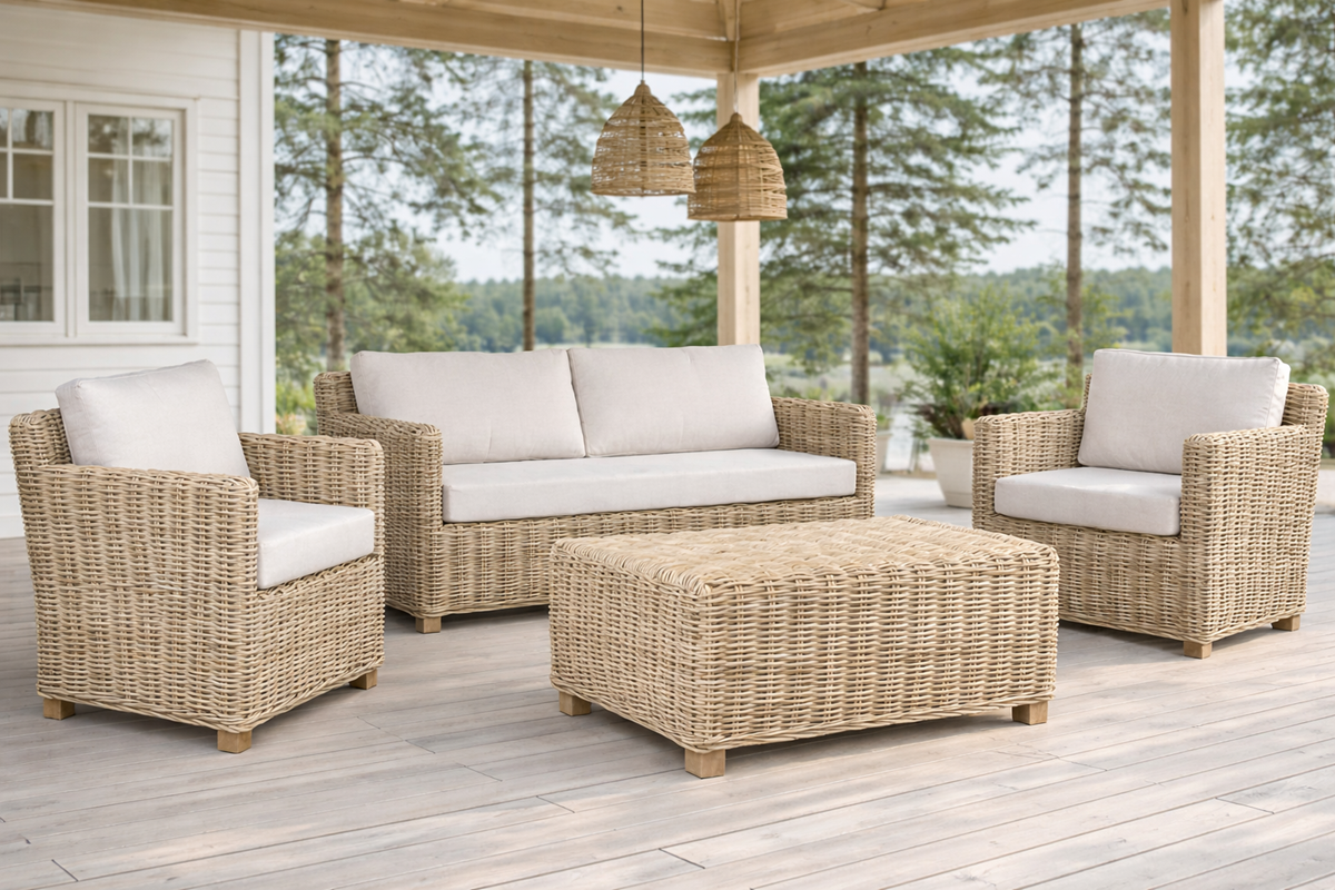 Zestaw ogrodowy MIRABELLA z naturalnego, szczotkowanego rattanu CUBU