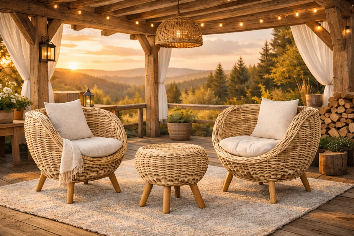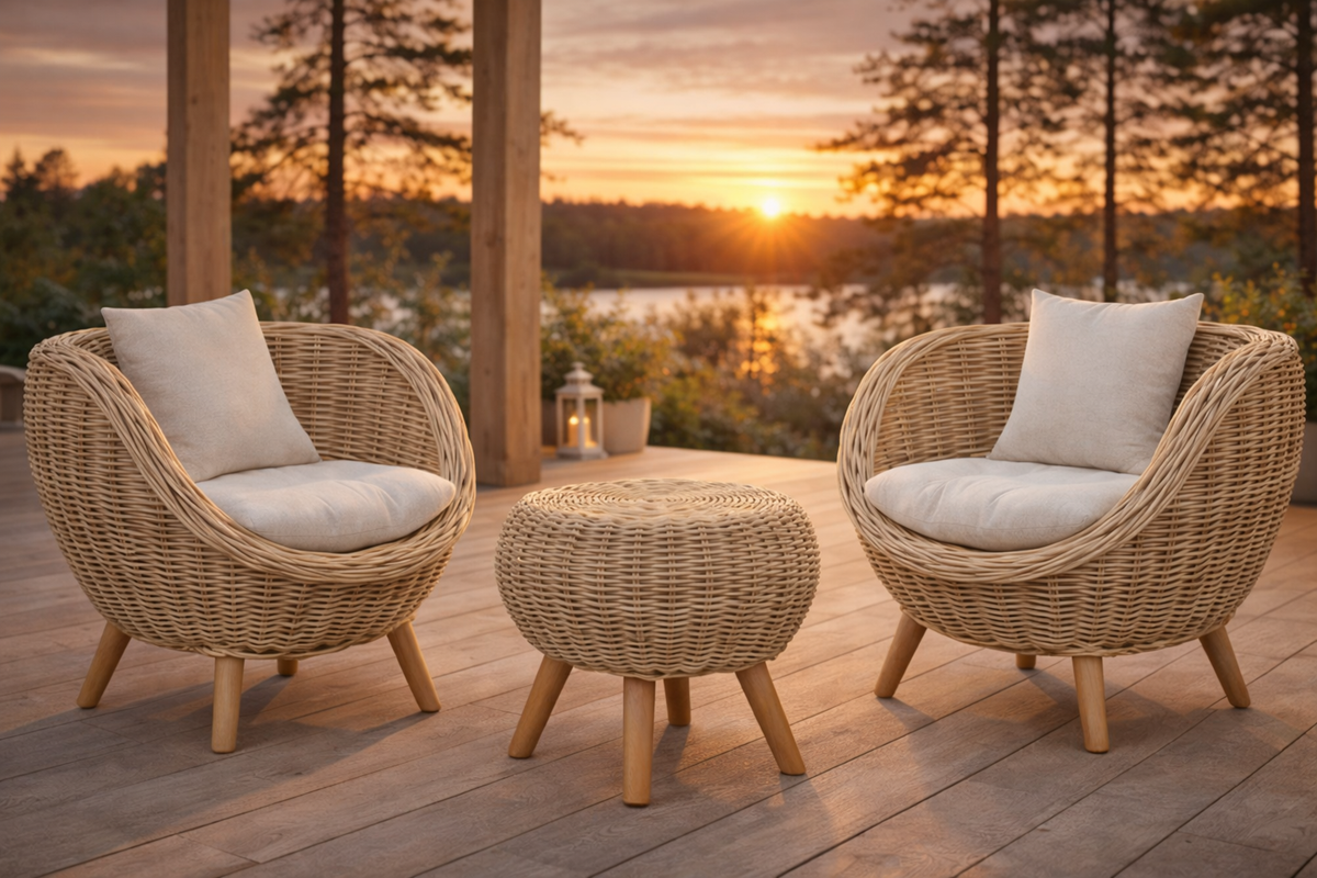 Zestaw ogrodowy PENIDA z naturalnego, ciętego rattanu CUBU